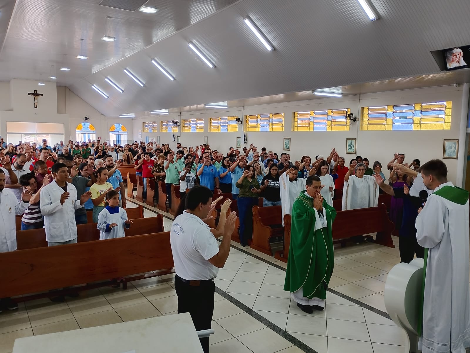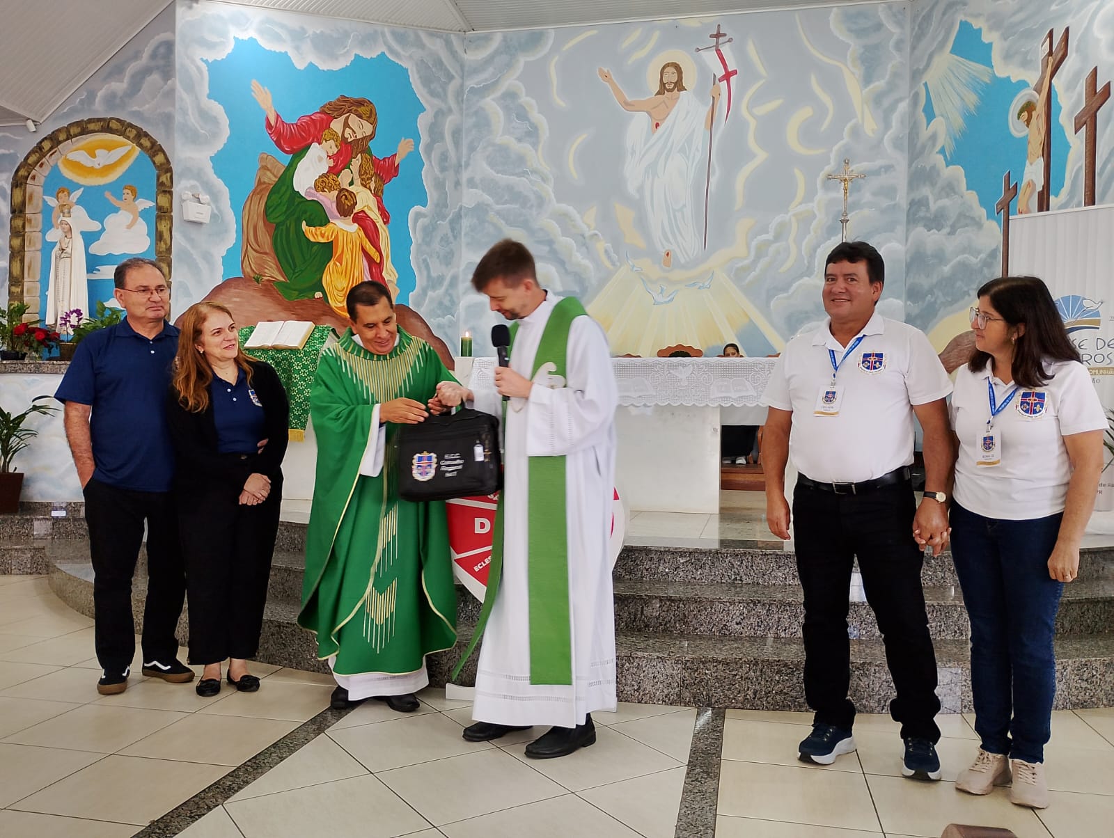 A atividade iniciou com a Santa Missa, com a transição da função de Diretor Espiritual Diocesano de Padre Hélio para o Padre Edemar.